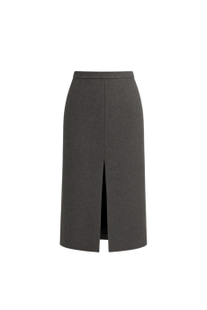 Fustă tip creion, elegantă și structurată, realizată din aceeași țesătură de lână ca și sacoul „GRANIT”. Se mulează frumos pe siluetă și are o croială clasică, completată de o fantă subtilă în față, pe mijloc, care adaugă confort la mers și un detaliu modern.