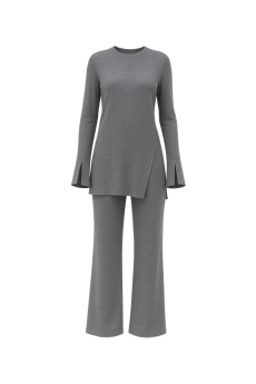 Modelul are închidere cu nasturi în două rânduri, două borduri frontale, buzunare laterale încăpătoare și imitație de centuri la manșete, care adaugă un accent rafinat.